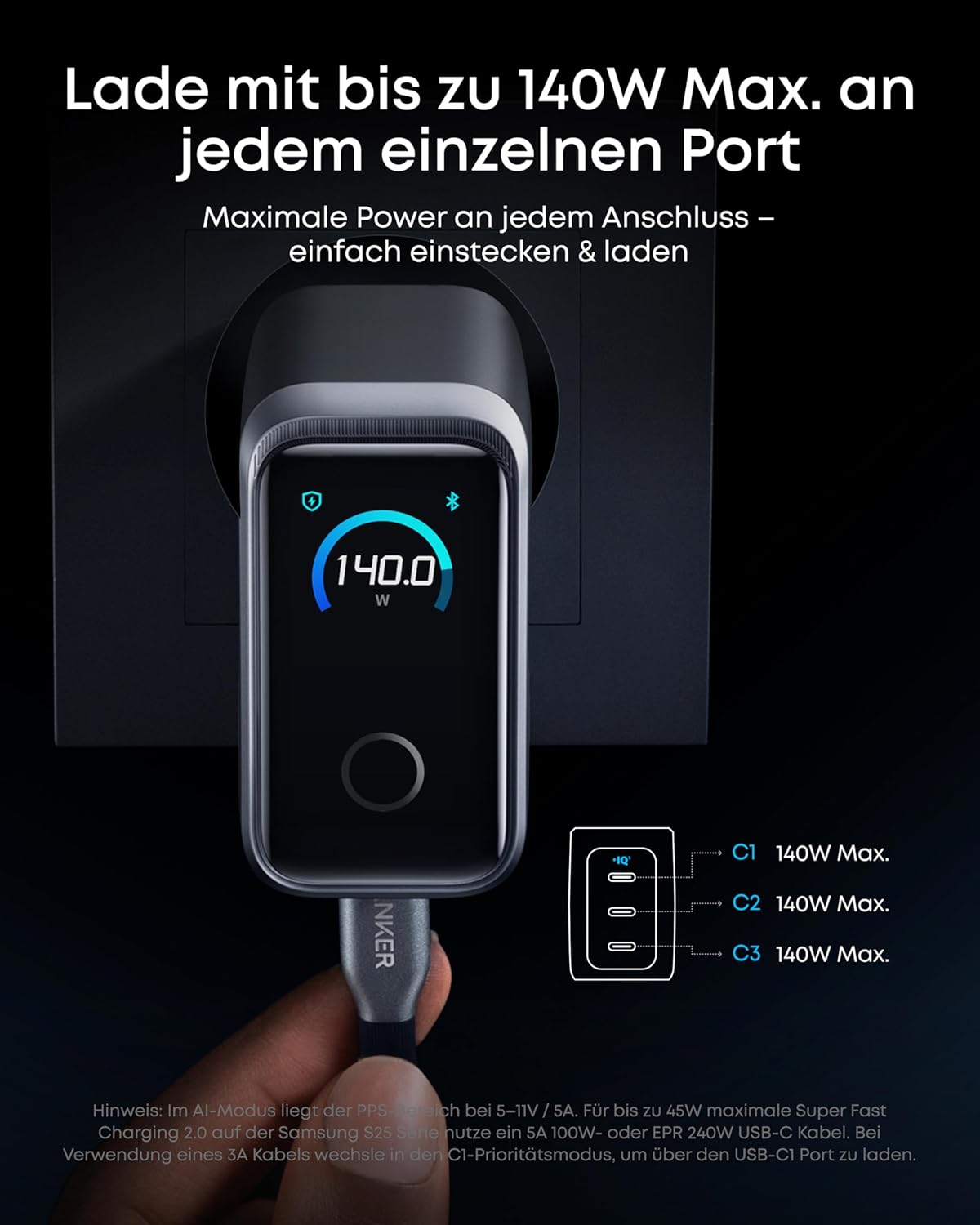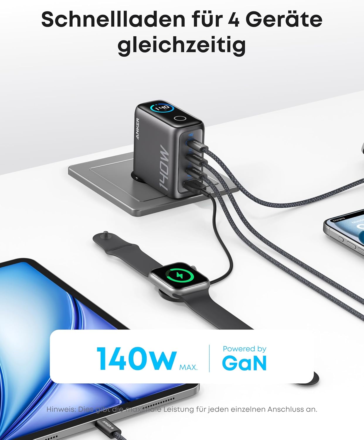 Anker Laptop Charger, 140W Max 4-Port GaN USB C Charger Block with Smart Display