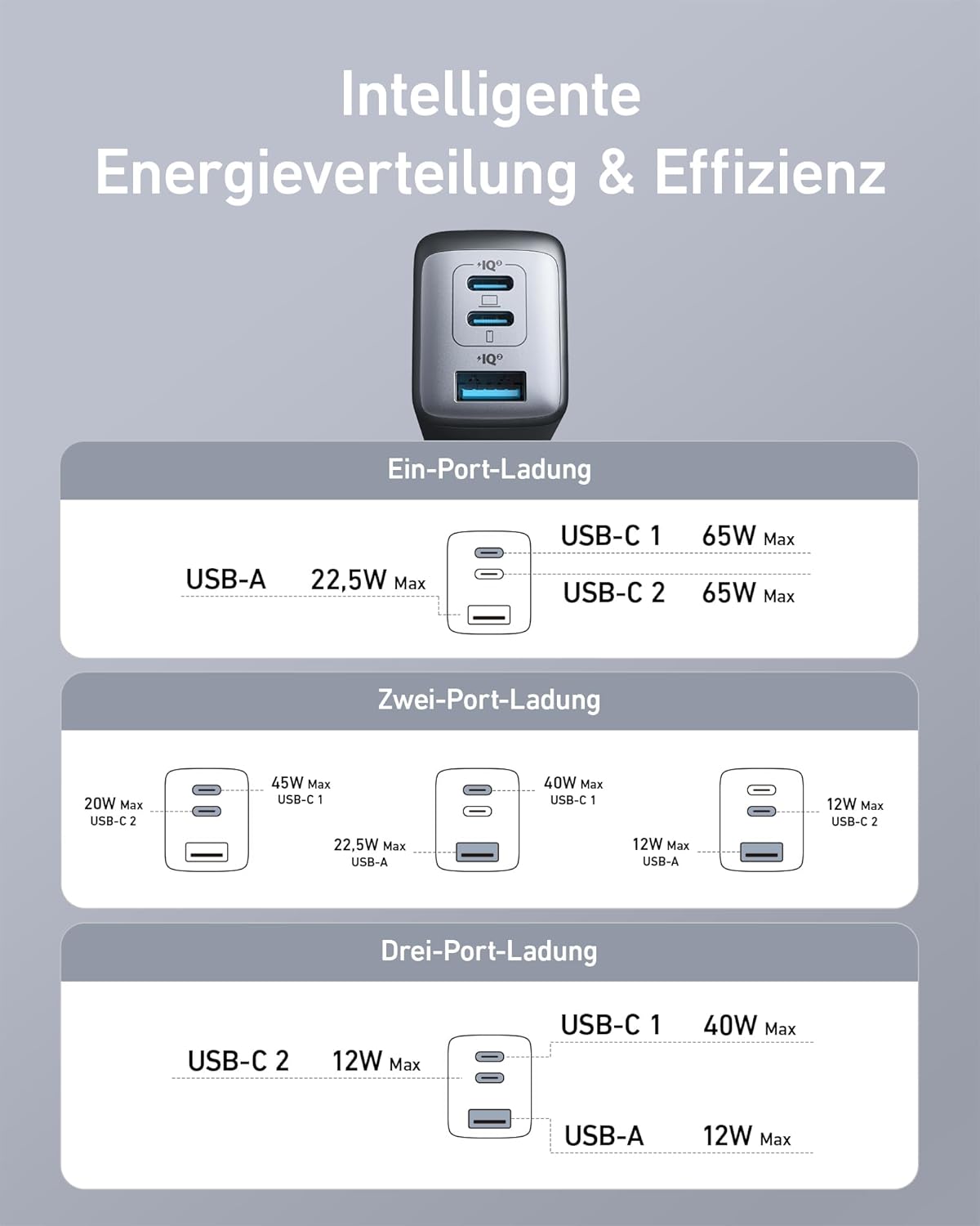 Anker Charger, 65W 3-Port Fast Compact Foldable USB C Charger Block for MacBook Pro/Air, iPad Pro, Galaxy S20, Dell XPS 13, Note 20/10+, iPhone 17 Series, Steam Deck, and More